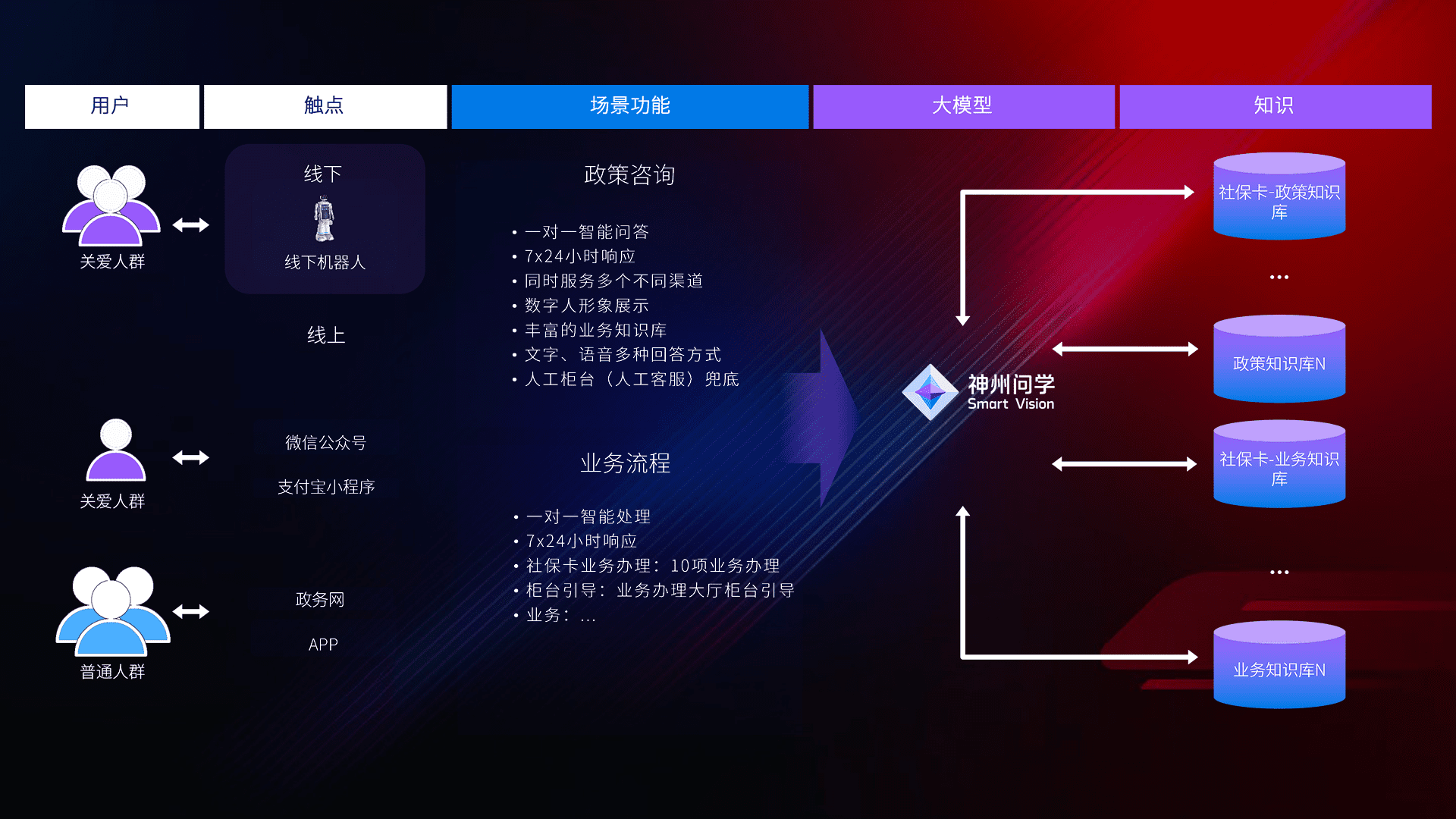 • 线上线下全覆盖:线上提供微信公众号、、、、支付宝小程序、、、政务网、、app多种渠道,,与线下机器人形成完整服务体系。。。。